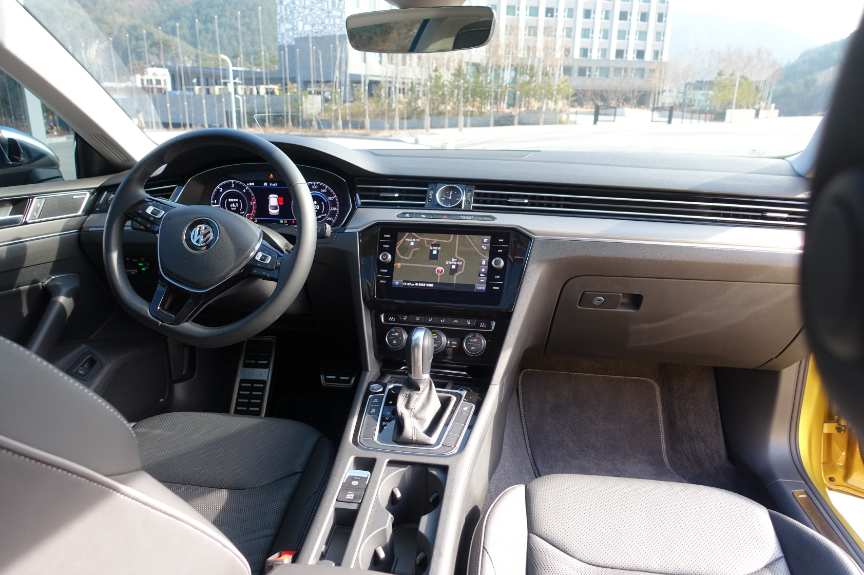 아테온의 스타일링은 호불호가 갈리지 않는 것 같습니다. 물론 시승차의 색깔이 한몫 하는 것도 있지만 색상은 차치하더라도 생김새에 균형과 화려함이 잘 섞여있습니다. 무엇보다 안팎으로 상호간 통하는 디자인이 소유자에게 언제나 안정적이고 차분한 느낌을 주는 것 같아요.